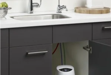 Sistema de tratamiento de agua eSpring con grifo auxiliar incluido para instalarlo debajo de la pila. Ideal si no quieres tener el eSpring visible.