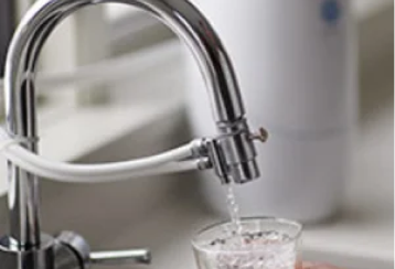 Sistema de tratamiento de agua eSpring con acople para enroscar directamente sobre el grifo de la cocina.